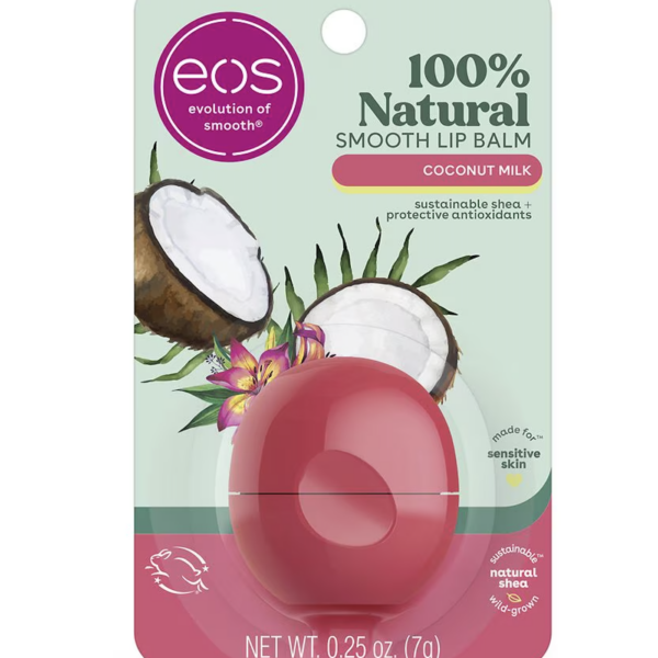 EOS Natural Shea Lip Balm Coconut Milk, tropical papaya, and vanilla creates our instantly-moisturizing Coconut Milk Lip Balm, which has beach vacation vibes written all over it!