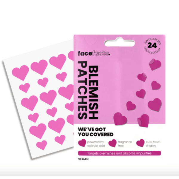 Clear your skin the sweet way! The Face Facts Hydrocolloid Blemish Patches Hearts are a must-have for anyone who wants to treat breakouts discreetly and effectively. These heart-shaped hydrocolloid patches are designed to visibly reduce pimples overnight by drawing out excess oil and pus, while creating a protective barrier that prevents picking and infection.