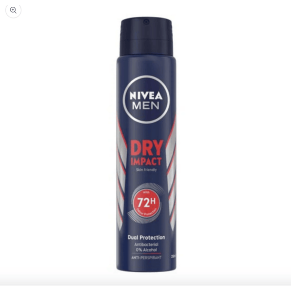 Whether you’re heading to the gym, the office, or a night out, Nivea Men Deodorant Spray Dry Impact keeps you feeling fresh, dry, and confident.