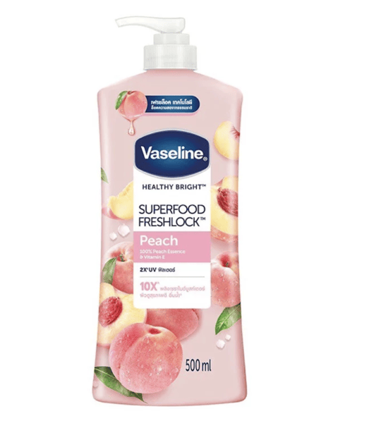 Give your skin the nutrition it deserves with Vaseline Healthy Bright Superfood Freshlock 2x UV Lotion (Peach) 500ml. Formulated with natural peach extracts, this body lotion provides deep hydration, brightening care, and sun protection in one step. The Freshlock technology ensures long-lasting moisture while preventing skin dullness caused by UV rays and daily exposure to the sun.