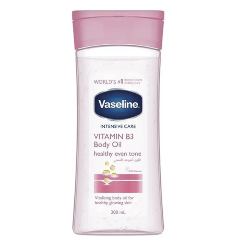 Elevate your skincare routine with Vaseline Vitamin B3 Body Oil, expertly formulated to deliver radiant, even-toned, and deeply hydrated skin. Infused with Vitamin B3 (Niacinamide)—a powerhouse for brightening—and Vaseline Jelly micro-droplets, this lightweight oil works to replenish your skin barrier, fade dullness, and lock in moisture for all-day hydration.